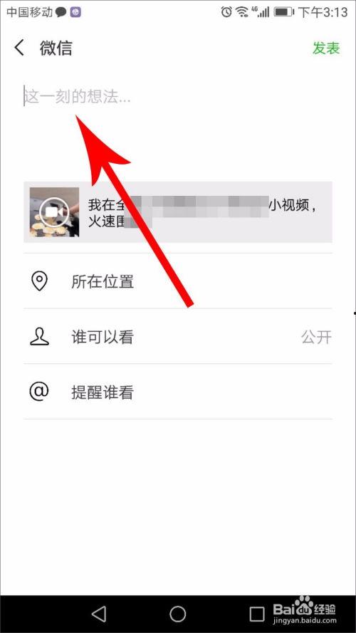 如果你选择分享到朋友圈,还可以在下方编辑分享内容。你可以添加文字说明,或者选择“带话题”来增加视频的曝光度。记得,一个好的标题和简短的描述能吸引更多人的注意哦!